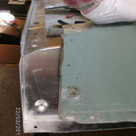 Nach vollständigem Etlacken des Sitzkastens habe ich das marode rechte Seitenteil des Sitzkastens durch ein neues Blech ersetzt.