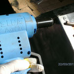 Die Schweißpunkte an der Vorderseite des Sitzkastens habe cih aufgebohrt und beim Einbau dann durch Blindnieten ersetzt.